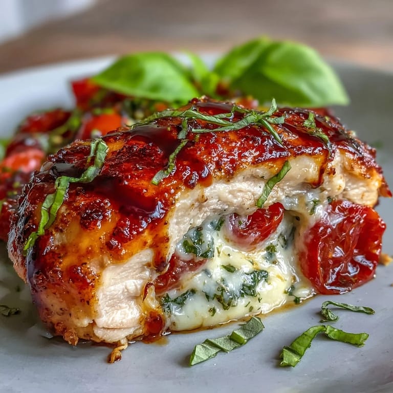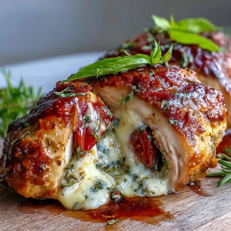 I often pair this dish with a crisp salad or roasted veggies, balancing the richness of the stuffed chicken. The flavors play well with everything from peppery arugula to lightly charred zucchini, and a side of crusty bread (if you aren't avoiding carbs) is perfect for mopping up any leftover glaze. Planning ahead for sides makes dinner feel complete and effortless.
