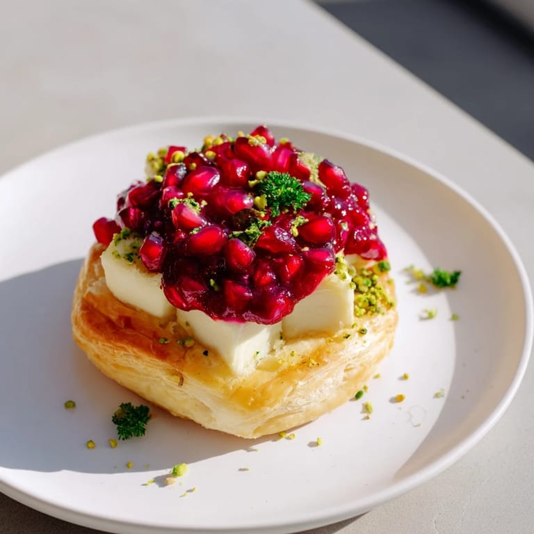 Pin It A festive and elegant appetizer featuring creamy Brie, vibrant fruit preserves, and a burst of fresh herbs, perfect for any New Years celebration.