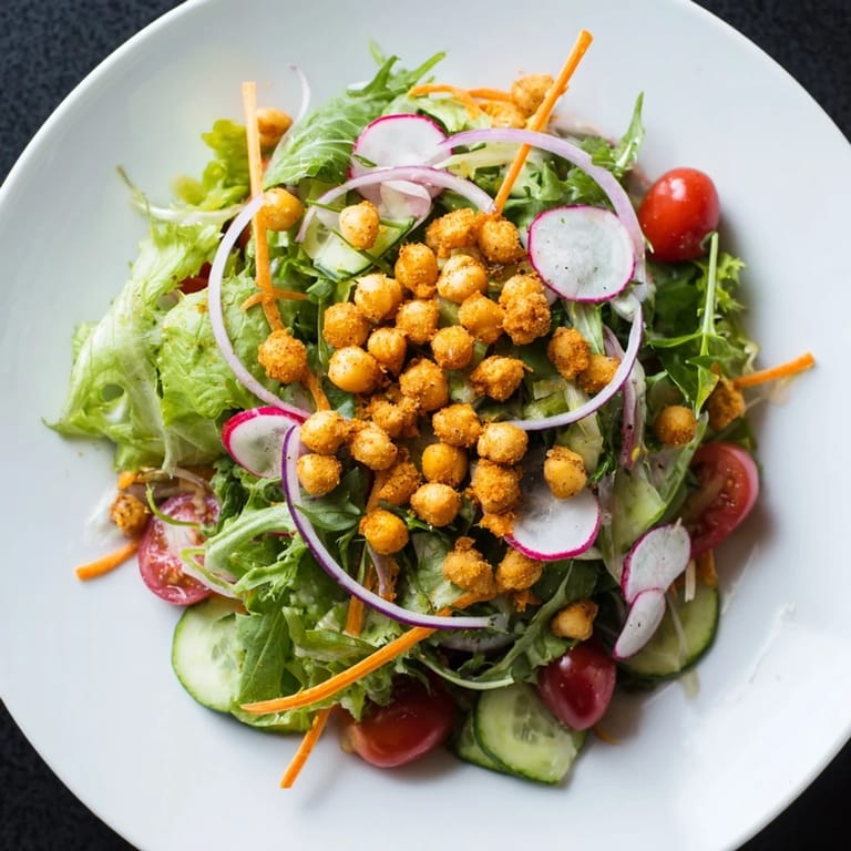 Pin It There's something magical about the moment when a simple salad becomes a meal you actually crave. I stumbled onto this combination one Tuesday afternoon when I was trying to use up a can of chickpeas and wanted something lighter than my usual lunch. The idea of roasting them until they shattered between my teeth felt like a small revelation, and pairing them with fresh greens suddenly transformed the whole dish into something I found myself making again and again.