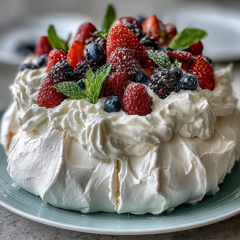 Last spring, I made this Pavlova for a friend’s garden brunch, watching her kids steal raspberries from the platter before I could even finish garnishing. The table was crowded with mismatched plates and laughter, and the pavlova disappeared almost instantly—leaving only a dusting of powdered sugar and berry stains. That day, the meringue cracked a little more than expected, but no one minded. I learned that the real magic is in sharing, not perfection. It's now my go-to dish whenever I want to bring a bit of brightness to the table, regardless of the season.
