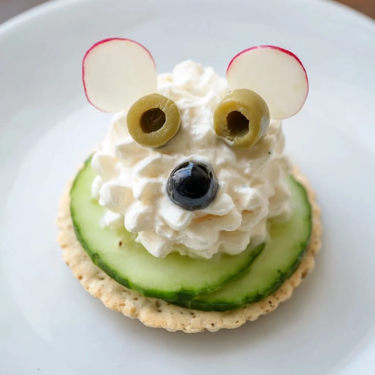 Pin It A whimsical, savory appetizer featuring cool cream cheese, crisp veggies, and crackers stacked to resemble polar bears on floating icebergs—perfect for parties or themed gatherings.