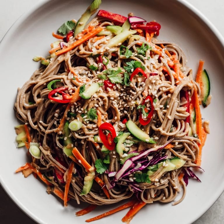 Pin It Summer in my tiny apartment kitchen was always a bit chaotic until the day I discovered soba noodles at a local Asian market. The vendor mentioned them so casually—just buckwheat noodles, nothing fancy—but when I boiled them and the water turned slightly cloudy, I realized they were nothing like the pasta I'd grown up with. That first bowl, dressed simply with sesame oil and a handful of vegetables, tasted clean and alive in a way that made the heat outside feel less oppressive. I've been making variations ever since, and this one with the creamy peanut dressing has become my go-to when I need something that feels both nourishing and effortless.