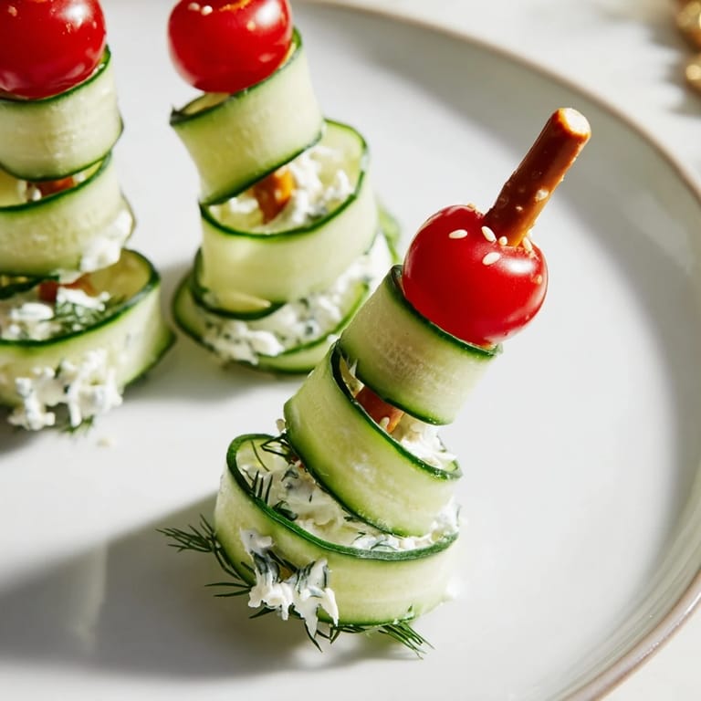 Pin It With their playful appearance and fresh flavors, Spiral Cucumber Ribbon Christmas Trees are more than just an appetizer—they're a conversation starter and a festive highlight. Encourage guests to enjoy these bite-sized creations immediately to appreciate the crisp textures and vivid colors at their best.